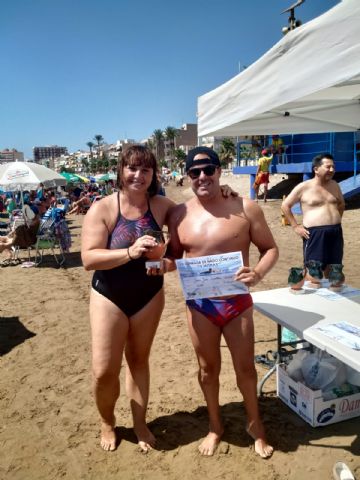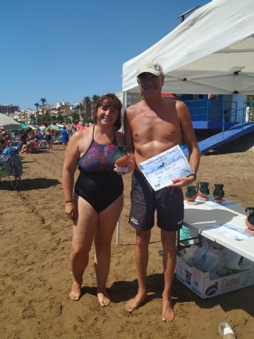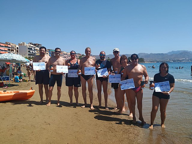 En esta ocasión se realizó en el canal de nado del Puerto de Mazarrón en un ambiente playero donde participaron 3 nadadoras y 5 nadadores. También les acompañaron alguna que otra medusa que se hicieron notar con alguna picadura, aunque eso no impidió terminar la prueba hasta el final.