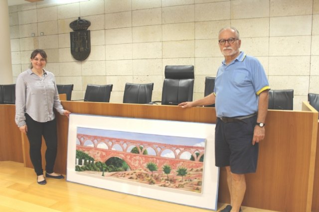 El polifacético artista Alfonso Gallego ha donado al Ayuntamiento de Totana una pintura de su obra personal en agradecimiento a la exposición “Un paseo por las faldas de Sierra Espuña. Canciones, pinturas y poemas”, que organizó en la sala municipal de muestras “Gregorio Cebrián” del 20 de septiembre al 3 de octubre.