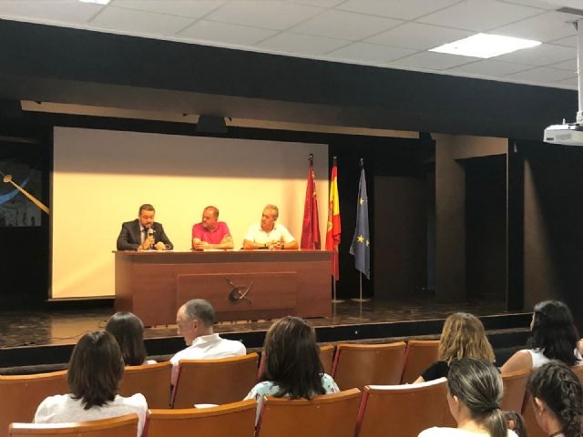En la imagen, el director general de Unión Europea, Juan Jose Martinez Lozano (d), el alcalde de Totana, Juan José Cánovas (c) y el director del centro (d), en las citadas I jornadas Erasmus