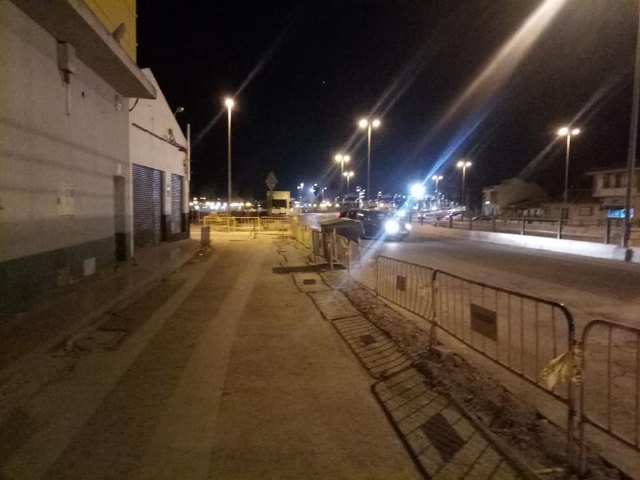 Ya no aparcan camiones, unas vallas lo impiden. El lugar por las noches ya se encuentra totalmente iluminado, sin rincones lumpen.No existe obstáculo entre farola y acera. Al cerrar la banda de aparcamiento, el peatón pasa de un itinerario de 0.80 m de anchura a uno de casi 4 metros. Incluso con la obra, pasear es más agradable. No sólo hay mayor anchura,sino que la tierra tapa los aceites y olores que quedaban como resultado de la presencia de camiones.