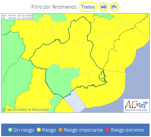 En el Valle del Guadalentín, aunque no estemos en aviso, las rachas también pueden ser fuertes y se pueden superar los 50 o 60 km/h, incluso los 70 u 80 km/h en zonas altas de montaña, por lo que hay que tener más precaución en zonas como Sierra Espuña.