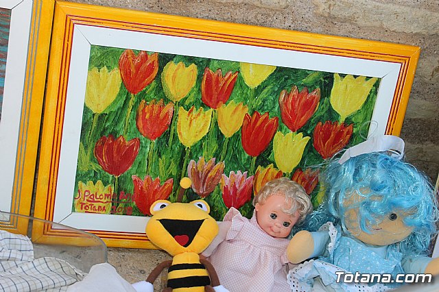 En el Mercadillo se pusieron a la venta cientos de objetos de todo tipo: libros, ropas, zapatos, bolsos, peluches, abalorios, objetos de vidrio, juguetes,… casi todos al precio/donativo simbólico de 1 €uro. Todos estos objetos habían sido donados por vecinos de Totana, que quisieron desprenderse de ellos, para que pudiesen ser ofrecidos en el Mercadillo Solidario.