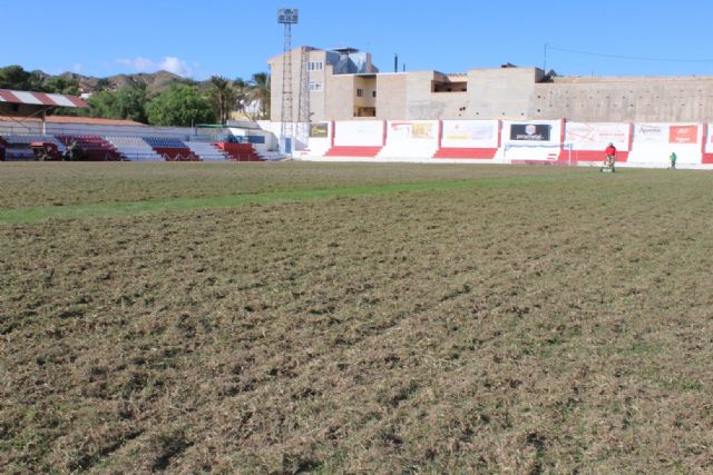 La Concejalía de Deportes acomete la resiembra de invierno del césped del estadio municipal "Juan Cayuela", que no se podrá utilizar hasta enero