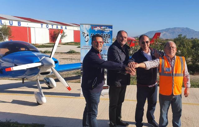 Esta iniciativa, que tendrá lugar el próximo 15 de diciembre en las instalaciones del Aeroclub Totana, ha sido presentada este sábado por el presidente de D'Genes, Juan Carrión; el alcalde de Totana, Juan José Cánovas, y los miembros de Aeroclub Totana Isidro Benítez y Javier Velasco.