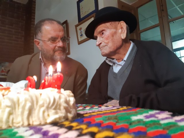 El alcalde, Juan José Cánovas, ha realizado hoy una visita al domicilio de Juan Tudela Piernas, más conocido como "Tío Juan Rita", el vecino más longevo de Totana, con motivo hoy de su 108 cumpleaños, que lo ha celebrado acompañado de familiares, amigos y vecinos.