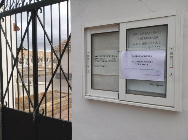 Se cierra el cementerio municipal “Nuestra Señora del Carmen” de Totana y el parroquial de El Paretón, autorizando solo el acceso de 15 personas a los enterramientos