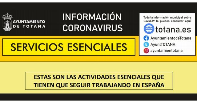 Servicios Esenciales. Estas son las actividades esenciales que tienen que seguir trabajando en España