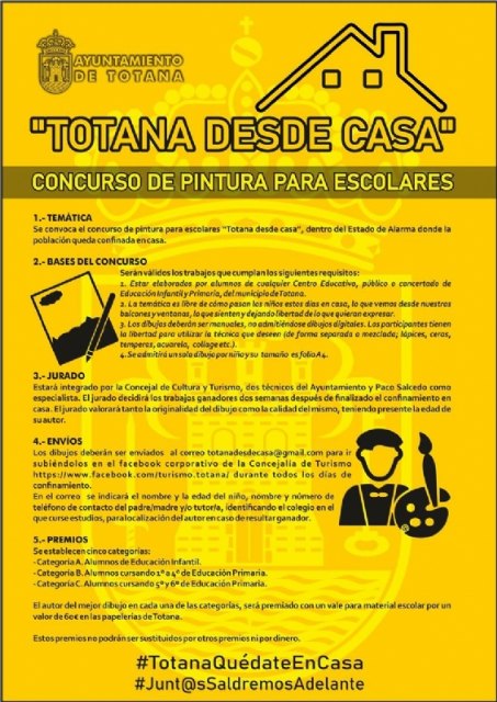 Los dibujos deberán ser enviados al correo totanadesdecasa@gmail.com para ir subiéndolos en el facebook corporativo de la Concejalía de Turismo