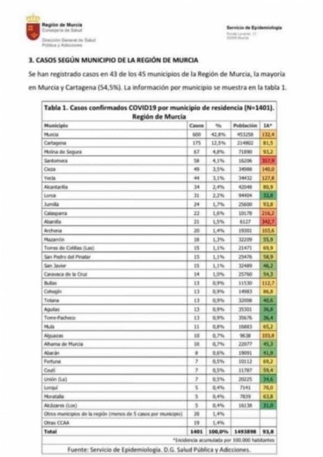 Totana mantiene los 13 casos de contagio registrados por coronavirus desde hace más de una semana, según los datos ofrecidos esta noche por la Consejería de Salud.
