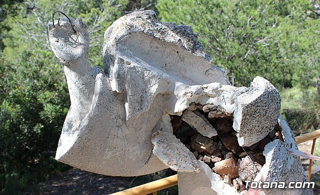 Unos vándalos han destronado la Segunda Estación (Jesús carga la cruz) del Vía Crucis de La Santa y han dañado también la Cuarta Estación (Jesús encuentra a su madre María).