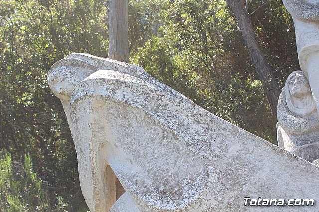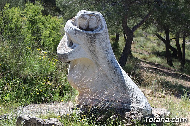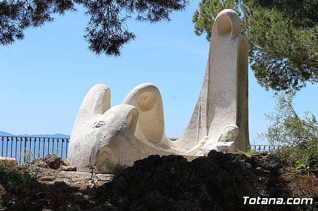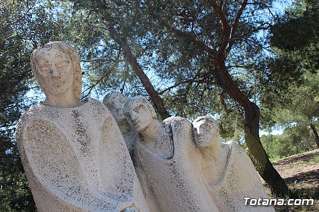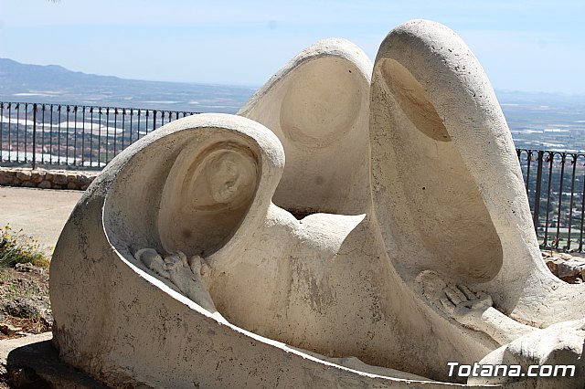 El Vía Crucis cuenta con catorce grupos escultóricos en el que se integran 33 figuras de 1,70 metros de altura, realizadas en piedra artificial y de estilo expresionista; mientras que el monumento al Sagrado Corazón de Jesús, obra de Nicolás Martínez en 1958, es una escultura de 9 metros de altura en actitud de caminar sobre la bola del mundo, que se eleva sobre una base prismática de otros 9 metros que alberga en su interior una capilla.