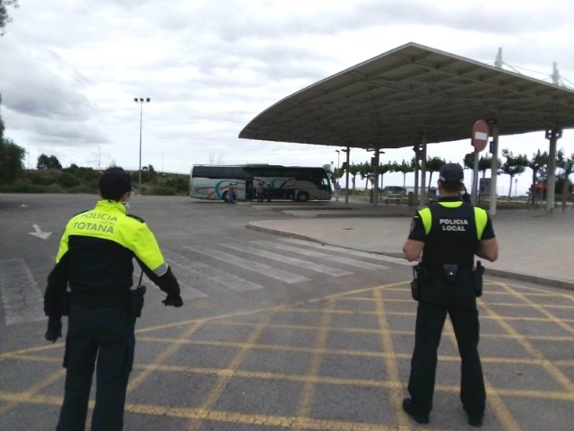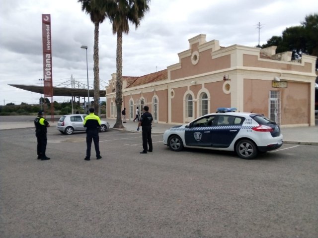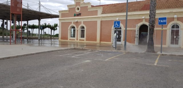 Estos trabajos han sido apoyados por efectivos de la Guardia Civil, Policía Local y Protección Civil en Totana con el fin de salvaguardar el perímetro de seguridad y cumplir con los protocolos establecidos. Posteriormente, la zona del intecambiador modal de Totana ha sido desinfectada por operarios del servicio municipal de limpieza viaria de esta localidad.