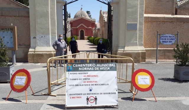 El alcalde, Juan José Cánovas, ha destacado la sensatez de los vecinos y vecinas de Totana tras su reapertura hace casi dos semanas, con una media de 70 visitas diarias al cementerio; lo que ha hecho posible ampliar y mejorar las medidas de alivio del servivcio.