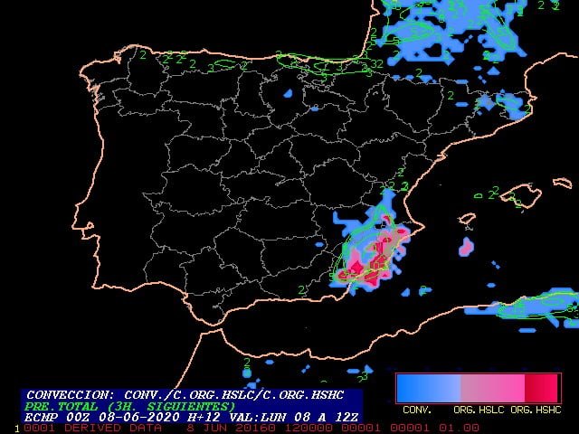 El día está transcurriendo tal y como se preveía, con algunos chubascos localmente fuertes en puntos del sur y este de la Región de Murcia, pero se irán haciendo más intensos, frecuentes y generalizados a partir de mediodía.