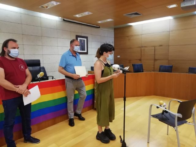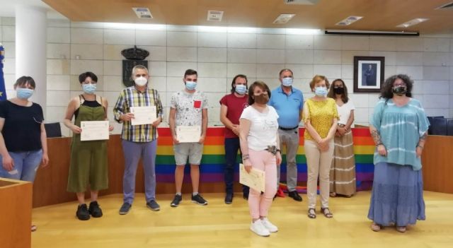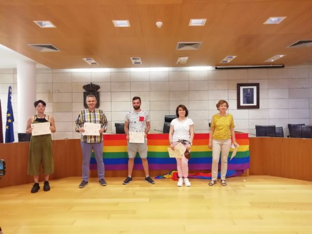 El alcalde, Juan José Cánovas, acompañado por el concejal de Igualdad, Javier Baños, y la edil Maribel Rubio, entregaron ayer los premios del I Concurso de Poesía, Relato Breve y Cómic organizado por el Ayuntamiento de Totana con motivo de la celebración de los actos conmemorativos del Día del Orgullo LGTBI.