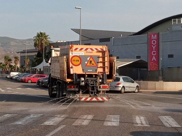 La Brigada de Conservación de Carreteras del Estado, a través de la concesionaria la empresa Probisa, va a acometer hoy trabajos de desinfección en algunas arterias y espacios públicos susceptibles de más concentración y movilidad de personas en el casco urbano de Totana, así como la residencia de ancianos "La Purísima", el polígono industrial "El Saladar" y la pedanía de El Paretón; que vienen a complementar los trabajos diarios que efectúan los servicios municipales en las zonas más sensibles.