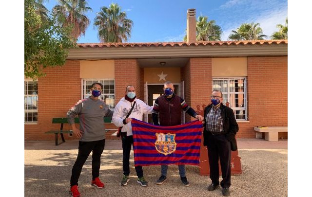 La peña barcelonista de Totana ha visitado el  centro de personas con discapacidad intelectual José Moya Trilla dentro de su programa "Ilusión solidaria".