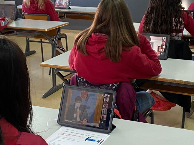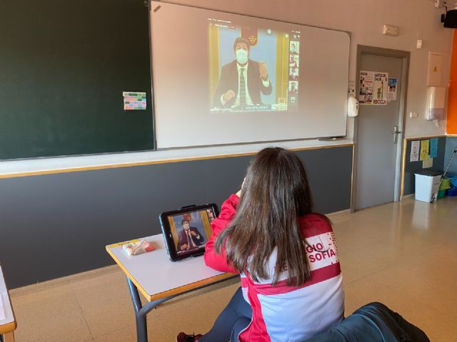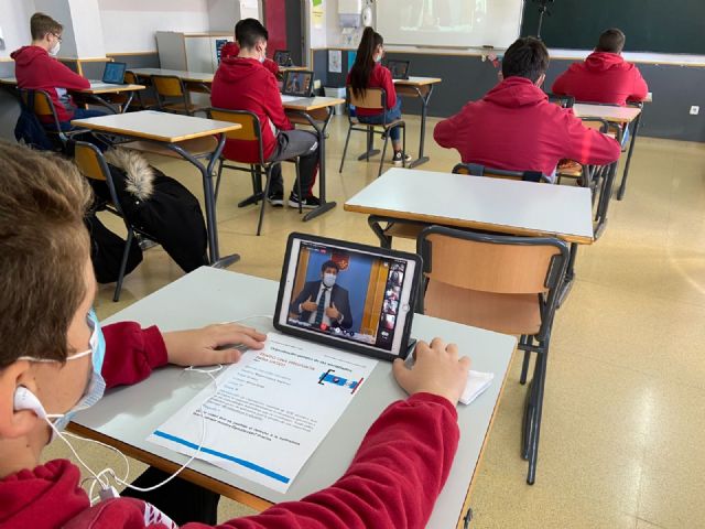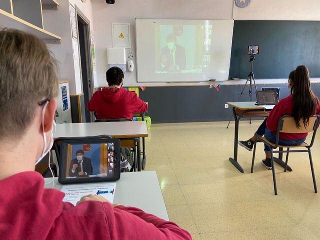 “Las preguntas estaban organizadas por bloques temáticos”, ha apuntado Espejo. La videollamada se ha prolongado durante una hora y las respuestas de López Miras a las cuestiones de los adolescentes les han permitido profundizar sobre las instituciones publicas que hay en la Región de Murcia o las competencias del Gobierno regional. “La intervención del presidente ha ofrecido a los estudiantes la oportunidad única de poder preguntarle personalmente para aclarar sus dudas sobre la Administración autonómica”, tal y como ha destacado el jefe de Estudios y coordinador del proyecto.