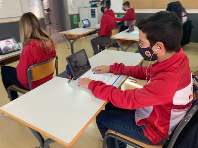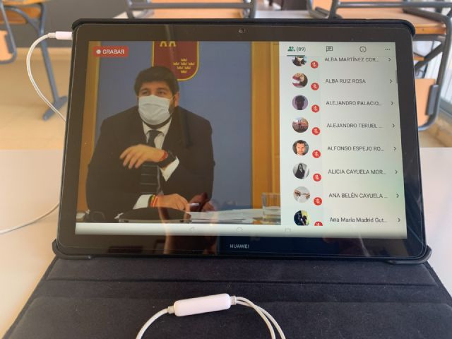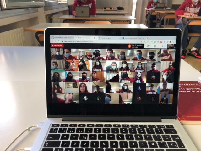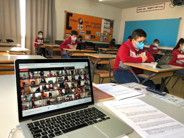 El Proyecto de Innovación Educativa: ‘Tengo una pregunta para usted’ diseñado por el Departamento de Geografía e Historia, tiene como principal objetivo que el alumnado de tercero y cuarto de la ESO se convierta en el protagonista de su propio proceso de aprendizaje para adquirir competencias mediante metodologías educativas innovadoras. Las nuevas tecnologías han jugado un papel fundamental para que la interacción de los estudiantes con el presidente regional, Fernando López Miras, respetase las restricciones de la actual pandemia de coronavirus. De forma que a través de Google Meet un total de cuatro aulas han realizado una videollamada simultánea al jefe del Ejecutivo murciano.