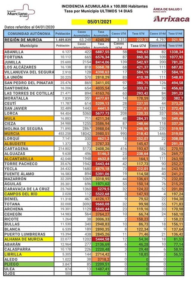 Hoy miércoles, en la Región, 9 pueblos vuelven a la Fase 1 (con cierre de Hostelería y Perimetral en los términos municipales) y es duro para esas poblaciones. Lo sabemos por experiencia en Totana. Mi solidaridad que los alcaldes y pueblos afectados y el deseo que puedan superar lo antes posible esa situación.