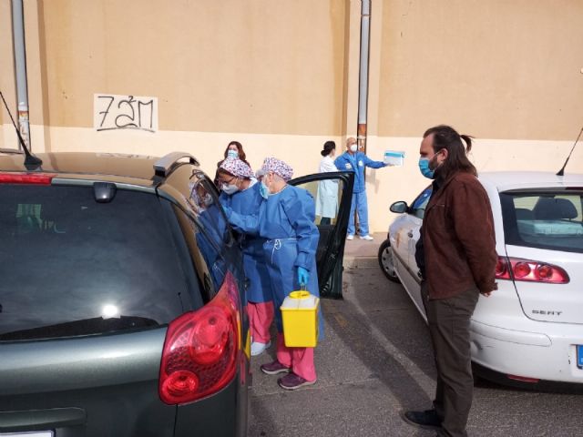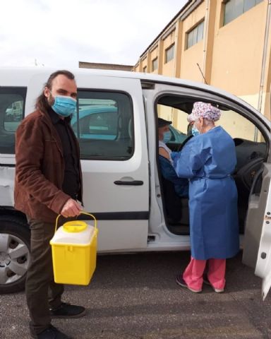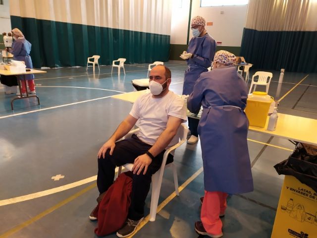 El concejal de Bienestar Social y Discapacidad, Javier Baños, ha querido conocer de primera mano el proceso visitando estas instalaciones municipales y acompañando a los sanitarios del Centro de Salud Totana Sur que se han encargado de poner las primeras dosis, en un dispositivo que ha contado con la colaboración de los voluntarios de Protección Civil.