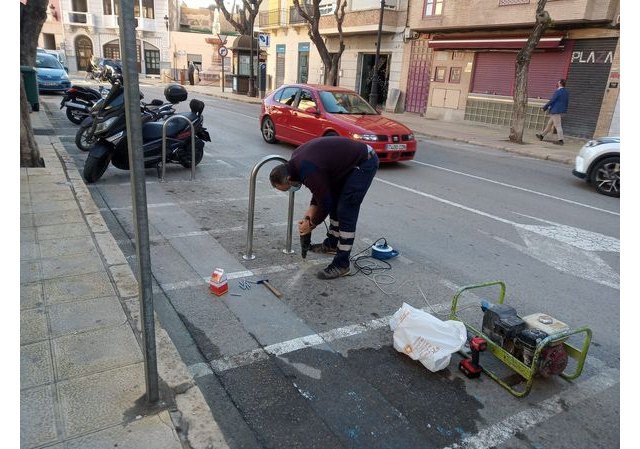 -Colocar arcos aparca bicis en calle Sol lateral sacristía iglesia de Santiago.