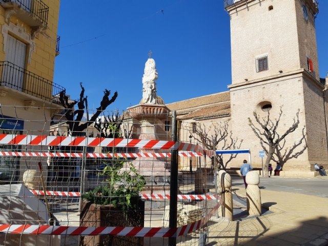 La Concejalía de Infraestructuras y Urbanismo y el Servicio Municipal de Aguas están acometiendo durante esta semanas las obras de reparación en la emblemática Fuente de la Plaza, que consisten en aumentar el volumen del depósito que nutre a los chorros de la mencionada infraestructura y, además, ventilar su arqueta para que no se produzcan atranques ni depósitos de cal indebidos.