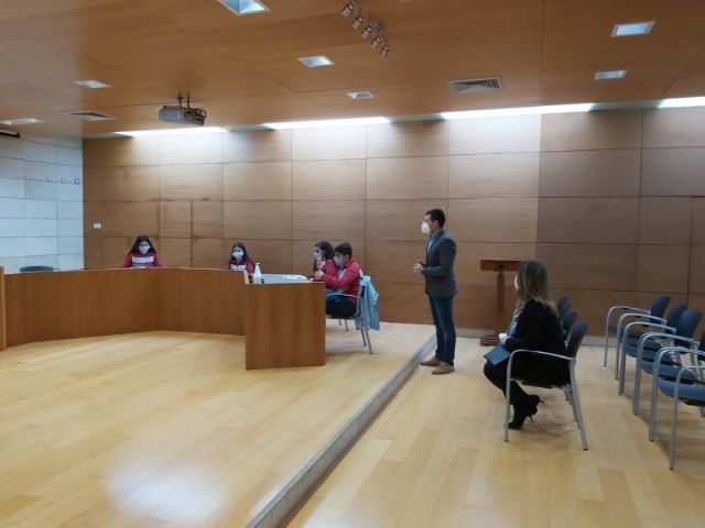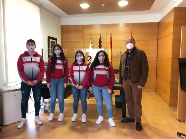 El alcalde, Juan José Cánovas, y el concejal de Igualdad, Javier Baños, han recibido en el salón de plenos del Ayuntamiento de Totana a una representación del alumnado del Colegio Concertado Reina Sofía, acompañado por los profesores Alfonso Espejo y Carolina Salinas, quienes han realizado la presentación del Proyecto #Merezcounacalle con el propósito de llegar a la igualdad de calles con nombre de hombres y mujeres en el callejero de Totana.