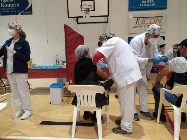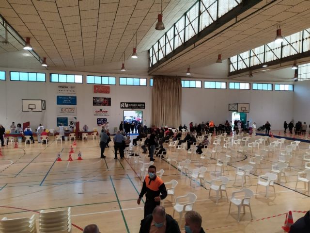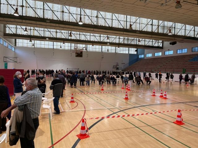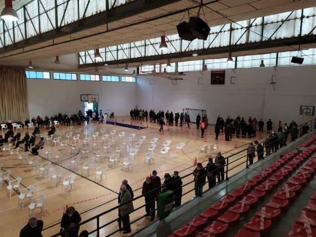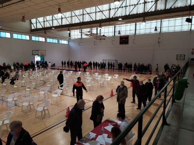 Un total de 2.232 personas de las cerca de 2.800 convocadas se han vacunado contra el COVID-19 en Totana durante el proceso de inoculación masiva que se ha celebrado este miércoles y jueves por la mañana, en las últimas 48 horas, en el Pabellón de Deportes “Manolo Ibáñez”, afectando a vecinos y vecinas en franjas de edad más adulta si bien se abrirá al resto de la población en las próximas semanas conforme haya disponibilidad de vacunas.