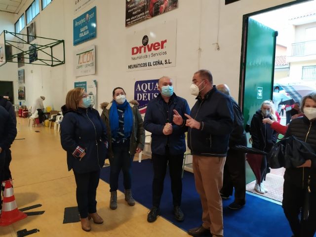 El alcalde, Juan José Cánovas, y la concejala de Sanidad, Inmaculada Blázquez, acompañaron hoy al gerente del Área de Salud III de Lorca, Enrique Casado, y la responsable de Enfermería, Satur Martínez, quienes han visitado la infraestructura municipal para conocer de primera mano cómo se está desarrollando la campaña en este municipio.