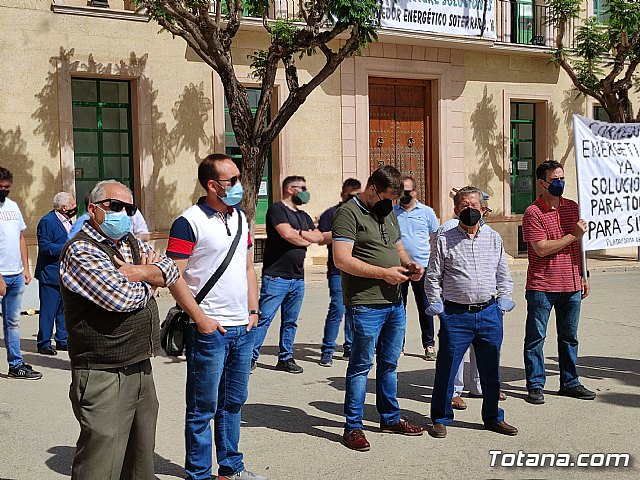 Las familias concentradas escenificaron en la protesta las 4.000 alegaciones presentadas a la modificación del trazado de la Línea de Alta Tensión de la planta solar fotovoltaica de Lorca, cuyo plazo finaliza el próximo día 5 de junio. Se ven afectadas más de 280 familias.