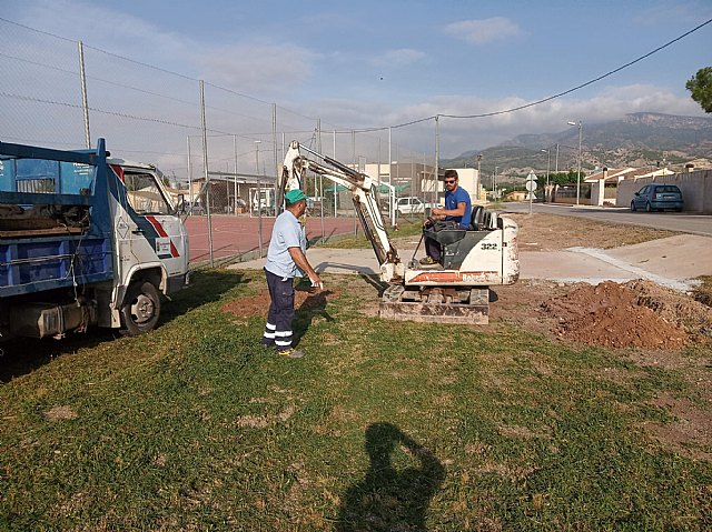 -Apertura de agujeros para planta árboles en el centro social de Lébor y pista polideportiva, programa aire limpio del colegio de Lébor.