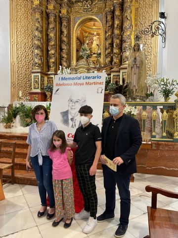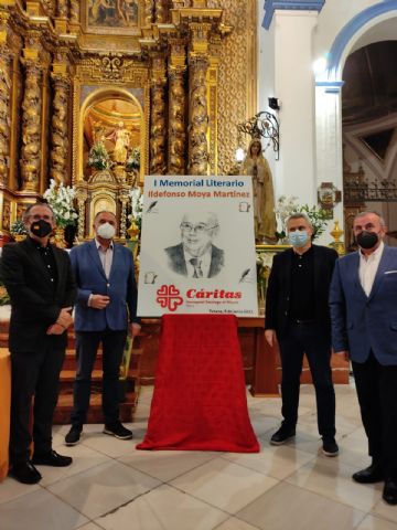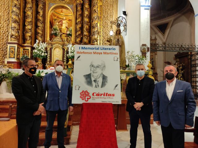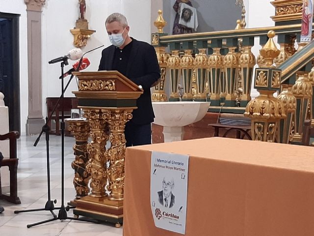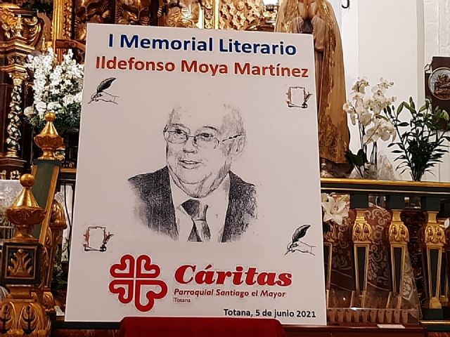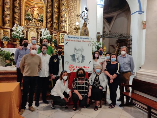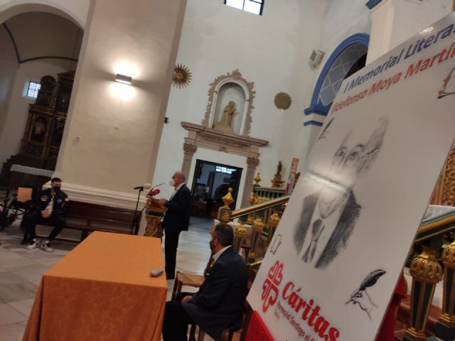El periodista Gregorio J. Asensio Báidez y el profesor José Antonio Riquelme han conseguido el primero y segundo premios del I Certamen Literario Memorial Ildefonso Moya de Totana, que ha organizado Cáritas de la parroquia de Santiago El Mayor, dotados con 400 y 200 euros respectivamente, y que fueron donados de nuevo por parte de los premiados a la causa de la ONG.