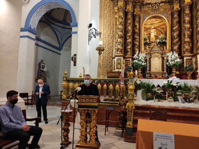 El acto de entrega de los galardones tuvo lugar el pasado sábado en la parroquia de Santiago El Mayor en el transcurso de un sencillo acto que contó con la asistencia del alcalde, Juan José Cánovas, la concejala de Cultura, Verónica Carricondo, representantes de la comunidad parroquial y Cáritas en esta localidad, así como familiares y amigos del que fuera profesor de Filosofía y Letras e Historia, que falleció a los 82 años de edad de forma trágica.
