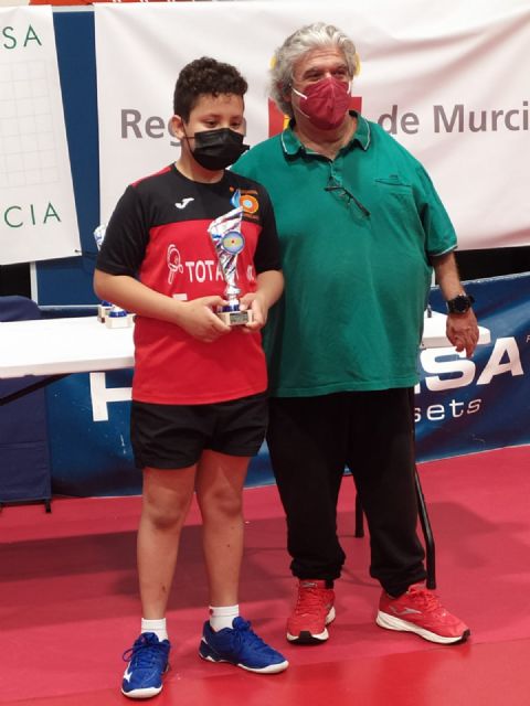 En la categoría infantil Víctor Vélez y Pepe Carreño eran los representantes del FRMAUSA Totana. Víctor no logró meterse en el cuadro final mientras que Pepe consiguió otro pódium. Fue primero de su grupo pasando bien la semifinal y luego cediendo en la final frente a Gabriel Sánchez, otro jugador totanero ahora en el club Cartagena.