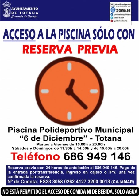 Los usuarios han de solicitar obligatoriamente cita previa en los teléfonos 686 949 146 ó 968 422 412;  y el aforo máximo es de 196 personas.