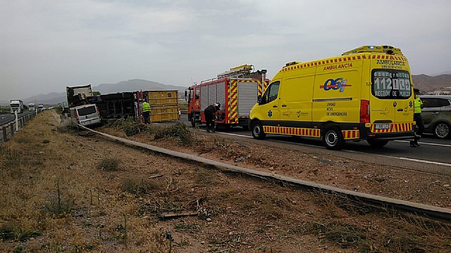Una mujer ha resultado herida leve al colisionar un camión y una furgoneta en la autovía A-7, en Totana