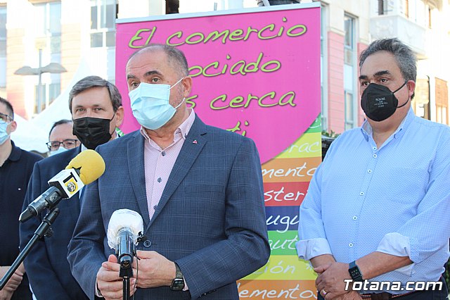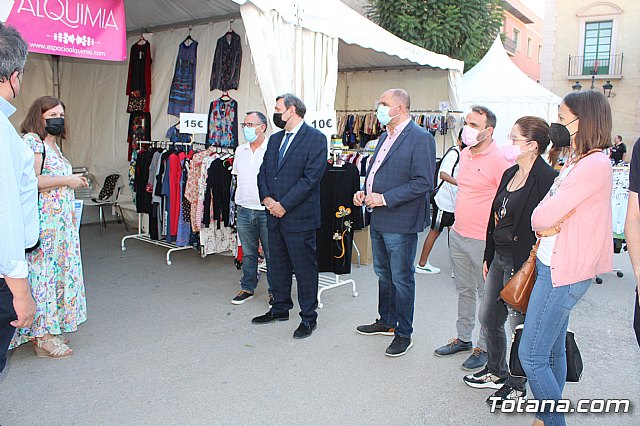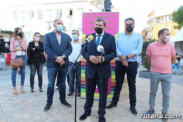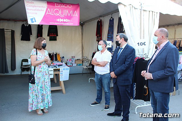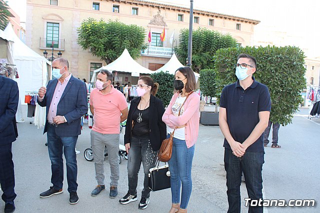 El alcalde, Juan José Cánovas, el director general de Comercio, Miguel Ángel Martín, acompañados por el concejal de Comercio, Javier Baños, y el el presidente de la Asociación de Comerciantes, Francisco Andreo, inauguraron la feria después de recorrer los diferentes stands instalados en esta plaza.