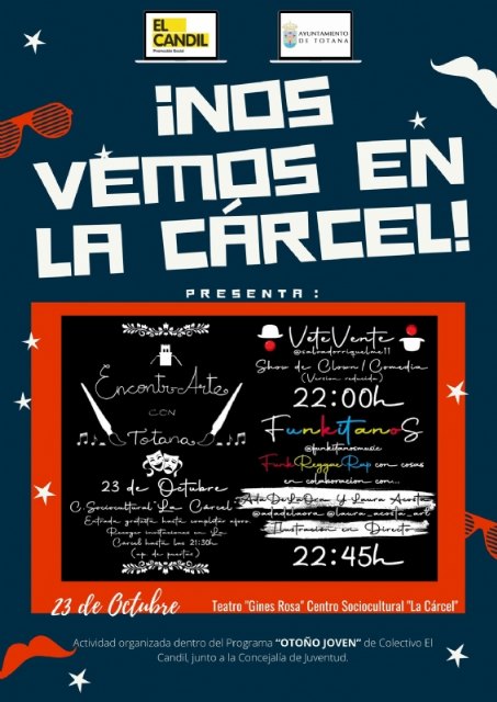 La Concejalía de Juventud ha organizado, con la inestimable colaboración de otras entidades que operan con este colectivo social en Totana, un ambicioso programa denominado “¡Nos vemos en La Cárcel!”; que incluye numerosas actividades que se celebrarán en torno a esta infraestructura del 22 al 24 de octubre.