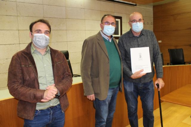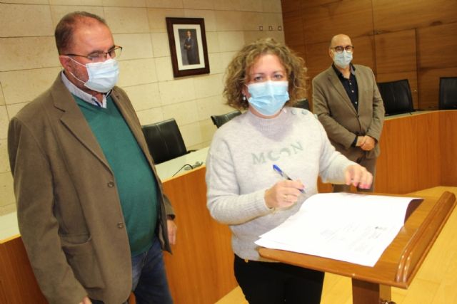 El alcalde, Juan José Cánovas, acompañado por el edil del ramo, procedieron a la firma de los acuerdos en un acto sencillo celebrado en el salón de plenos municipal