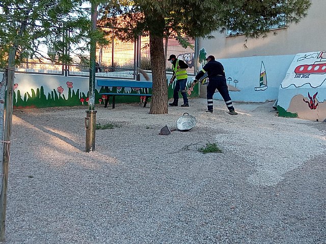 -Empezar a reparar caucho en el patio de la guardería Clara Campoamor.