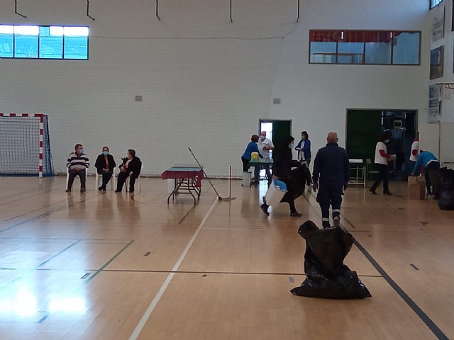 -Recoger material de la vacunas de ayer en el pabellón municipal.