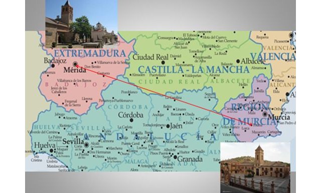 Esta ruta recorre las provincias de Badajoz, Córdoba, Jaén, Granada y Murcia, pasando por localidades como Caravaca de la Cruz, Puebla de Don Fabrique, Santiago de la Espada, Úbeda, Mengíbar, Andújar, Córdoba, Hinojosa del Duque o Mérida, entre otras.
