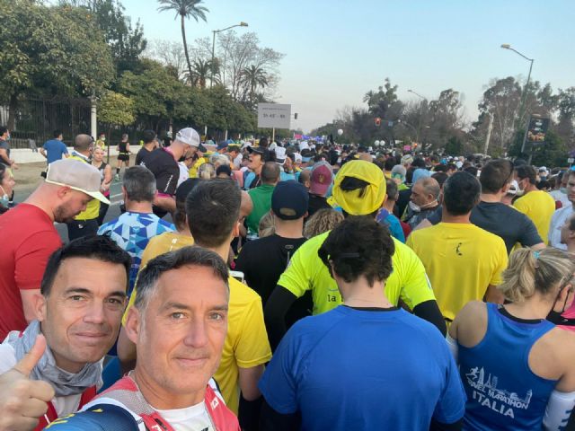 Juan Antonio y Jesús realizaron la prueba de manera conjunta, cruzando la meta de la ciudad hispalense en un gran tiempo de 4 horas, 26 minutos y 23 segundos, entre los 1.400 primeros atletas de su categoría.