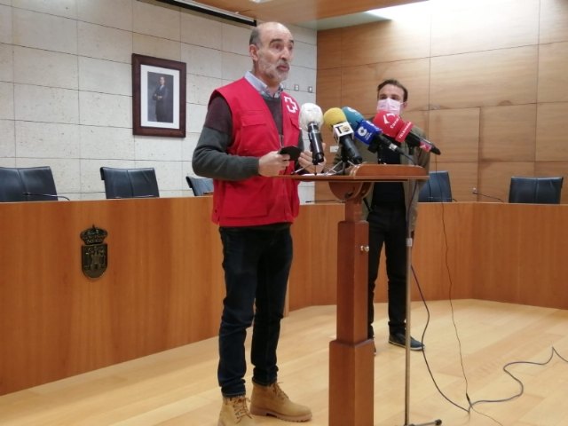 El concejal de Bienestar Social, Javier Baños, junto al director de la entidad Cruz Roja Española Totana, Pedro Avellaneda, y el responsable de formación, Ángel Poveda, han presentado esta mañana el servicio de traducción y aprendizaje de español para usuarios ucranianos impartido desde la entidad.