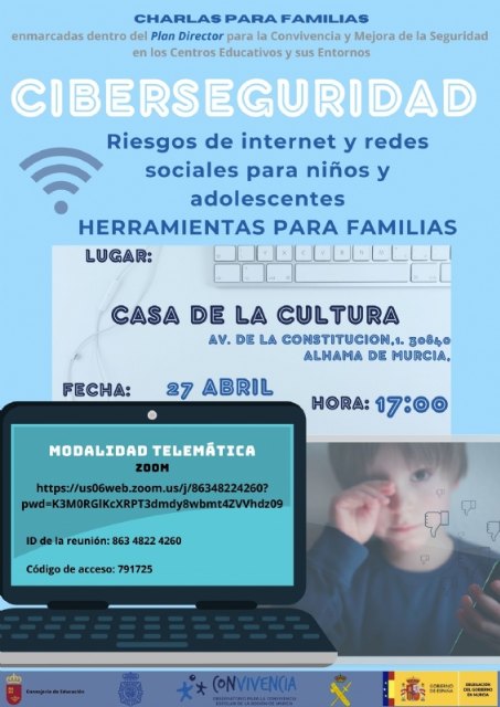 Policía Nacional y Guardia Civil impartirán la charla “CIBERSEGURIDAD. Riesgos de internet y redes sociales para niños y jóvenes. Herramientas para familias", dirigida a padres y madres residentes en los municipios de Totana, Alhama, Librilla y Aledo.