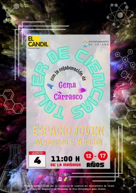 El programa de ocio alternativo juvenil “Arte-Facto”, organizado por el Colectivo El Candil y subvencionado por la Concejalía de Juventud, acogerá mañana jueves, 4 de agosto, un taller de ciencias impartido en colaboración con Gema Carrasco.