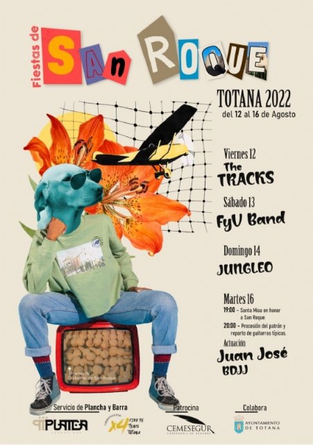 Por su parte, el martes 16 tendrá lugar la Santa Misa en honor a San Roque (19 horas), seguida de una procesión en honor al Patrón y el reparto de guitarras típicas (20 horas). Finalmente, se celebrará la actuación de Juan José BDJJ.