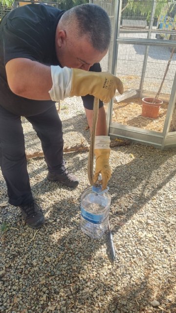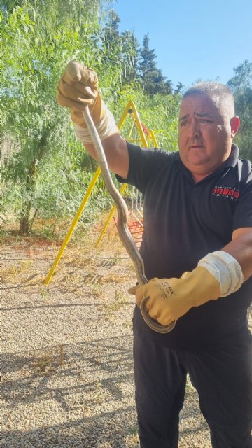 Protección Civil de Totana ha capturado esta mañana a una culebra bastarda que se había colado en una pajarera de Totana, según informan en redes sociales