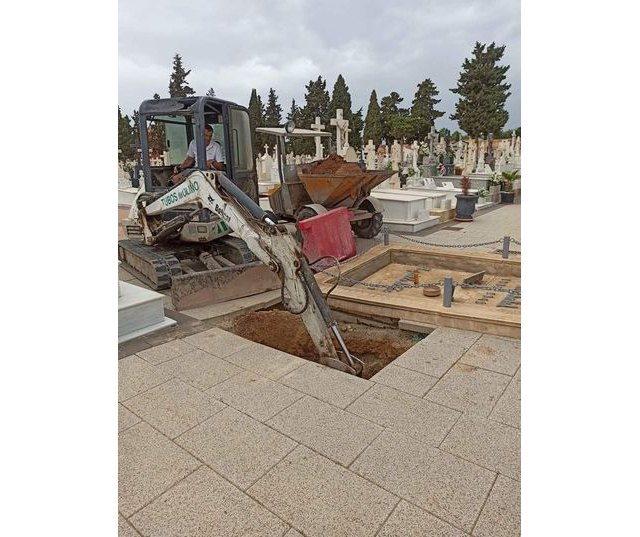 Hoy han comenzado los trabajos de comprobación del estado del terreno en el entorno de la "Fosa de los Caídos" en el Cementerio Municipal Nuestra Señora del Carmen.